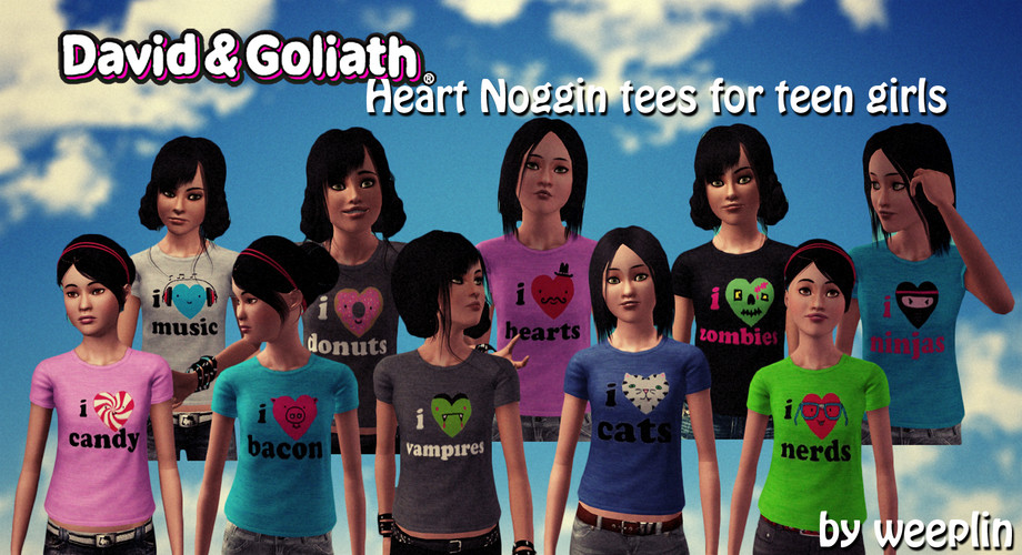 Ten different t-shirts in total all with different designs from David and Goliath's Heart Noggin t-shirt series.