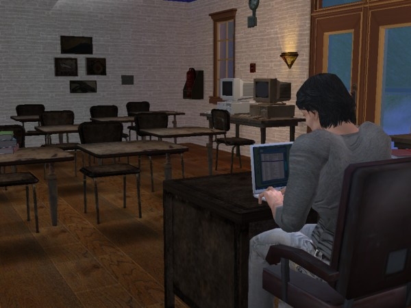 Late afternoon, and Rudi is staying late preparing lessons for the next day...