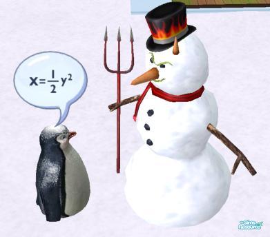 Pete the Pragmatic Penguin has an in-depth math discussion with Sam the Satanic Snowman...