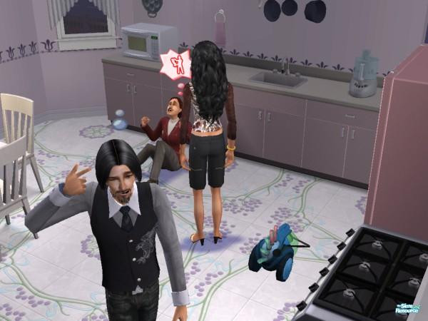 the man is thinking: "those women are really silly"