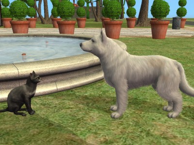 Just a random picture of a cat and a dog, standing outside May's house. (It's huge!)