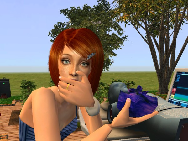 Pretty girl. What's in the purple thing?