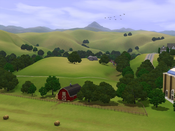 I love to watch those sloping hills with the barn and the mountains in the background. Who wouldn't long to live right here? \:wub\: