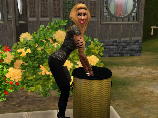 Shindaka Reeves, one of my Sims available for download here at TSR, nevously rummages through a Sim's trash while on vacation in Simla. I wonder if the laws there are different for invasion of privacy? ;)
