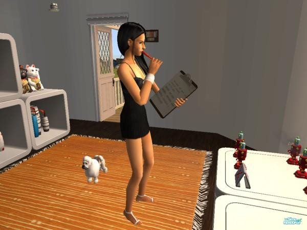 Matilda is working and Fanny the dog is standing behind her back.