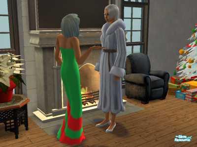 It's time for the Christmas party for my models LaQuisha and Victoria. They chat in front of the fire place and next to the Christmas tree wearing their Christmas gowns...