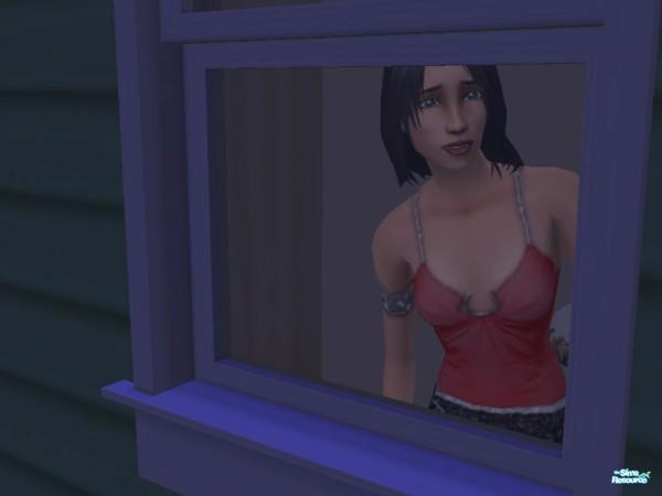 Mimi looking out the window and thinking about her roomies that left the house.