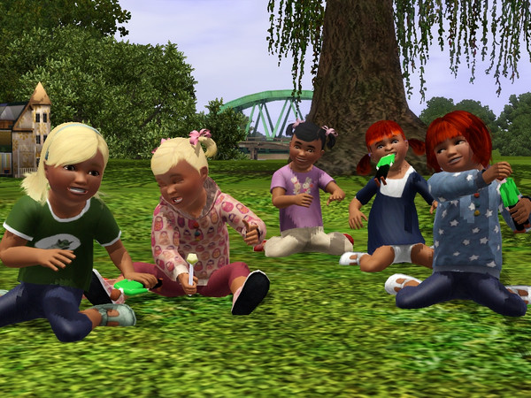 Two sets of twins and an orphaned grandbaby were a little too much this time around. The funnest parts were dressing them though! The cute hoodies are from LJgaming on TSR! Edit: The matryoshka pattern is from s00z and the star pattern is from lreveles (I think!)