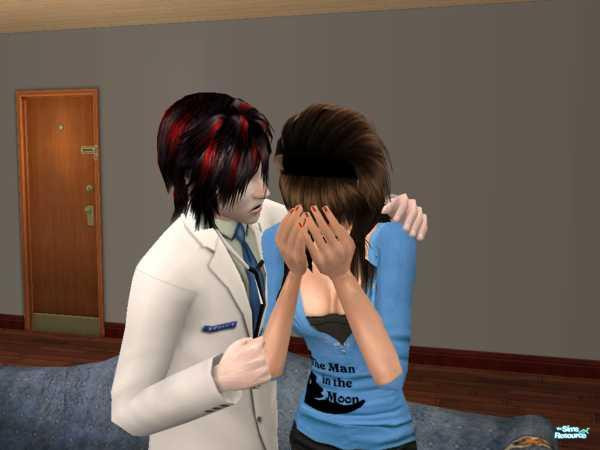 The Girl in this picture is crying because she was raped and her doctorwannabe lover is trying to help her....