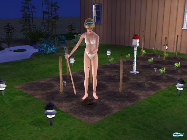 Zoe Zetter, due to give birth any moment now, outside, in her drawertails (underwear)no less, gardening for all the world to see. She doesn't care though! She loves her garden and it needed some doin' fer (tending).