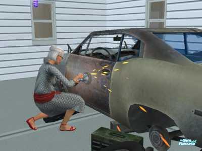 Granny loves to work on cars..