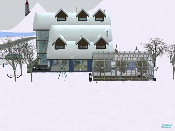 ...Coming May 23rd to TSR. Notice the Sim in the greenhouse planting seeds for her garden. There's no way she could've started one without the greenhouse, not during this blizzard! I always will make one for my lots! ;D Also, please take note of Tiko's front split-level stairs on the left side. The man is a blasted genius! :D