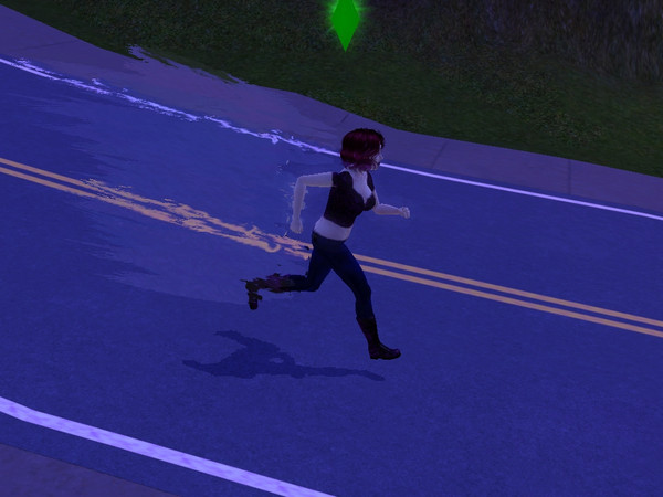 My Sim was running all the way to her source, which was a party that was happening at the time she was invited to. Yes she's constantly being invited to parties. She's the show of the party. XD But when she got to the party she tried to get on her bike and then got off it and I found her feet into the ground, I was like whoa. XD I didn't get to take a screenshot of that but oh well.