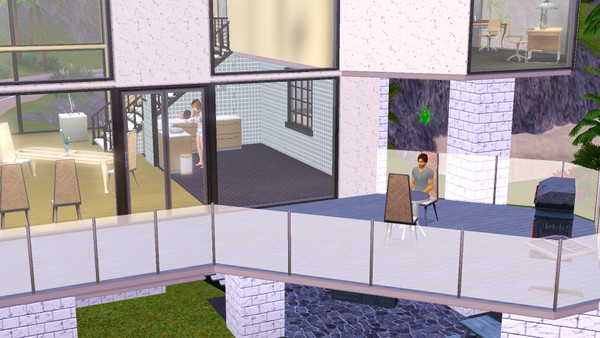 You can see the studio upstairs on the right, and in the kitchen only some furniture shows up,...