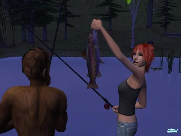 Showing bigfoot that she can catch rainbow trout, too.