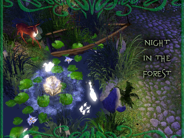 The moon rises over the woodlands, and the animals gather at the watering hole.