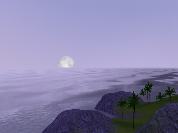 The moon at sunset valley at 6:00am sims time
