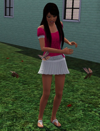 My sim really didn't like the bugs that invaded her new home when she moved in :)