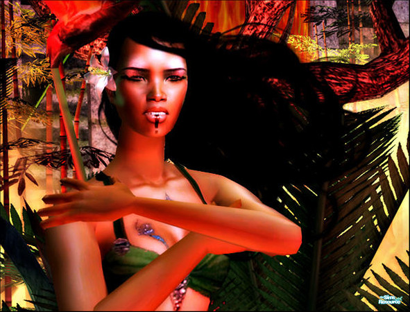 A Sims take on the Hawaiian volcano goddess, Pele.