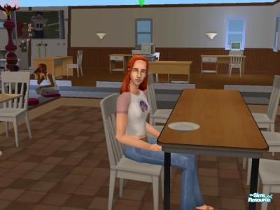 Here's a shot of Angela Pleasant (well, she's now Angela Broke in my game) dining in a dorm room at Sim State. She doesn't seem too happy at having her picture taken...