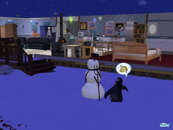 A Penguin That Showed Up To Talk Construction With A Snowman On My Main Lot.