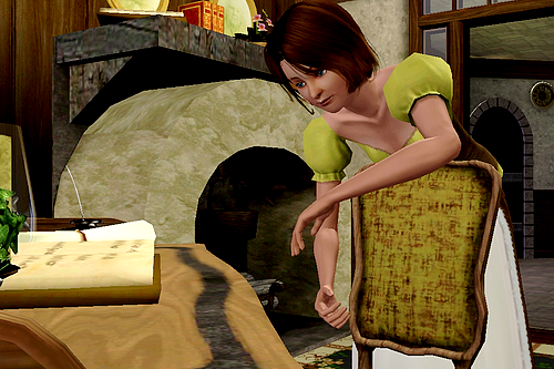 Idris, my ''Hobbit'' simsette enjoying a old dusty book in her Hobbit-Hole, inspired by the Bag End of Bilbo and Frodo and created by the talented Murfeel.