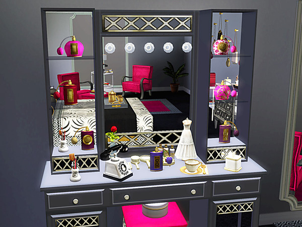 Vanity Table, it features mirror, glass, and 32 slots!