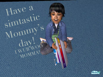 (The tot of my current Sims family, has a message for all Mom's in the world! Yay! -Love Ikkiko the Toddler) Mom comes in: "Awww, look hunny! He 'tried' to write momma on his toy boat!"