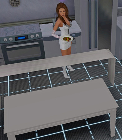 My sim wondering what has happened to her dining table, the way she just stood there looking at it, made me laugh.