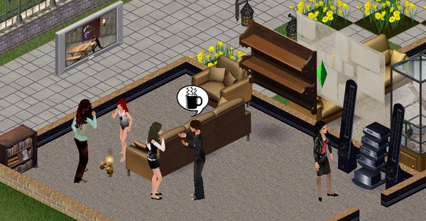 Deirdre is entertaining her guest playing Rock, Paper, Scissors while the others are talking about... coffee?