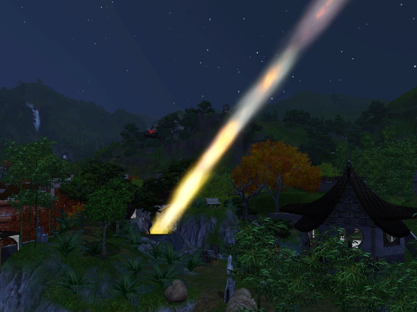 My simboy and his mother went to China for a vacation, he wanted to look at the stars. You can see him trying ot hide from the meteor.