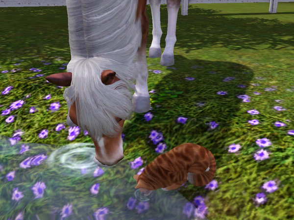 I was surprised to see my sim's horse and one of her cats drinking together from the pond. :)