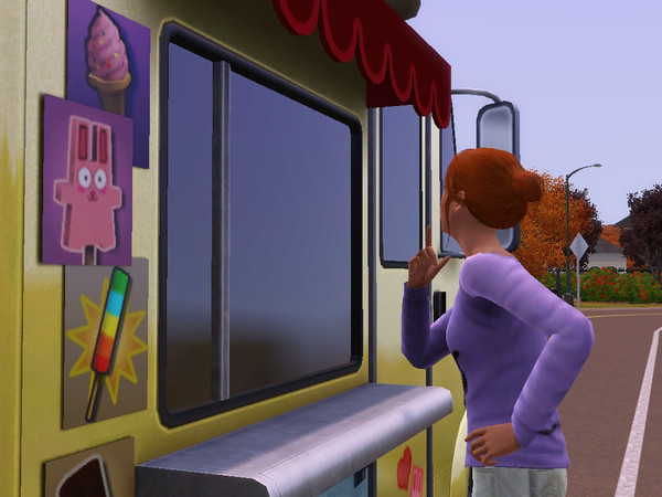 This new ice cream truck creeps me out. It shows up early in the morning and hangs out in front of my sim's house all day. And when she went to get ice cream no one was in the truck but the cone mysteriously appeared in her hand!