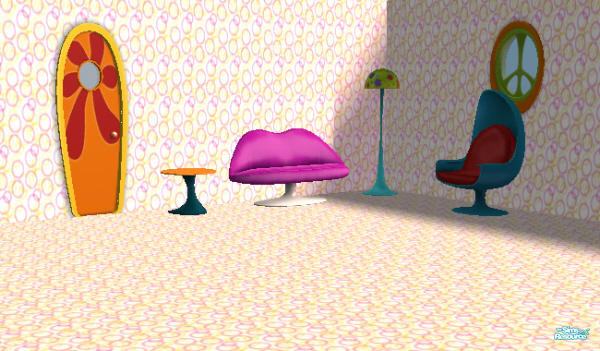 My Groovy, retro set I have been working on. A white background wallpaper with yellow and pink circles. If you like bold retro, give me 2 weeks ;o)! LOL Walls & Floors only at this stage.