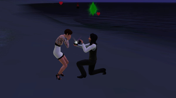 My Sim, Sparrow, proposing to his long-time girlfriend Jade.
