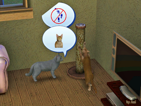 The grey cat wanted to use the scratching post, but it isn't possible because it's already occupied.