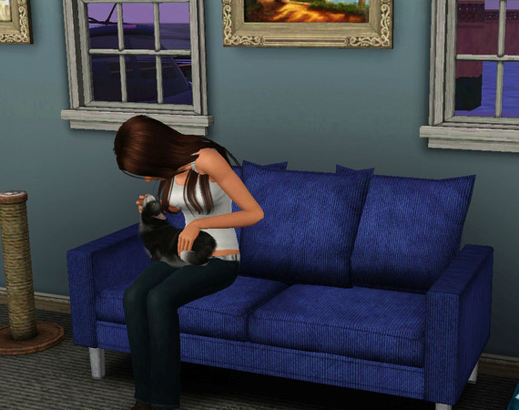 I went through a phase of my making my friends, as you do :P This is my best friend Sapho and her cat Pebbles. Unfortunately I do not have a photo to compare it to, but I think this is a good likeness of her! :3