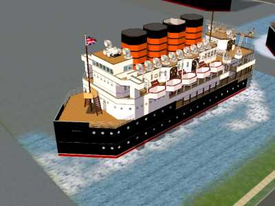 RMS lusitinya in daylight and civilian colours like her sister, notice her forward areas and vent layout are different as they were on the real ships.