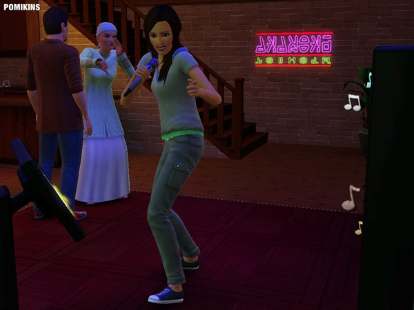 My Sim just starting out her singing career.. belting out on Karaoke