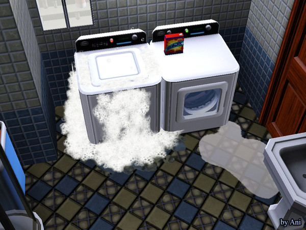 The washing machine was broken so, soon, there was the floods in the bathroom of my sims.
