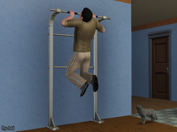 Exercice on the chin-up bar and the cat