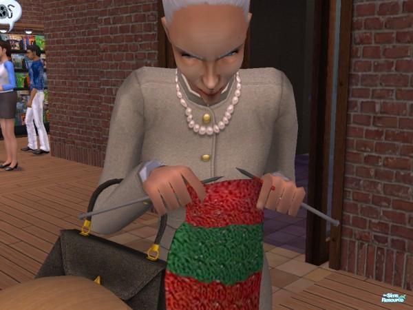 "Knit one purl one, knit one purl one. Oh, you're back to gawp are you? I was thinking, you may think I'll be gone with Sims 3. But when ever you play Sims 2, I'll be waiting! Hahahahahahahahahaha!!!!!!"