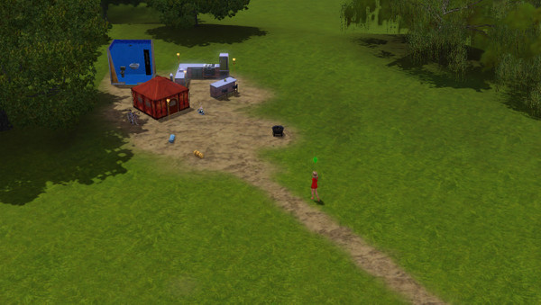 Just started this property yesterday, I'm sure I'll be adding to it as my sim makes more money. I'm thinking a large pond, lots of trees and plants, a BBQ, more seating... but I wanted to upload this now so you can see the basic living area without all that stuff obstructing it.