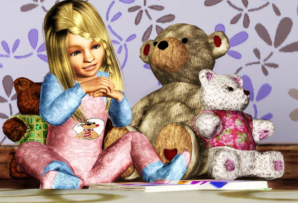 This is so cute, lokking at her book, surrounded by teddies... \:wub\: