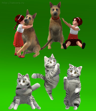 3 poses for cats 2 Dogs&Toddler Couple Pose Sets You can download it from my forum in my profile. Only .package format