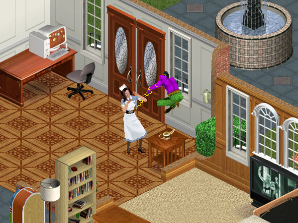 I only started playing The Sims relatively late on, at the end of 2003, with Double Deluxe. The base game and Livin' It Up are installed simultaneously, so I can't really differentiate between what came with the Base Game & EP1. However, I'm pretty sure the genie was introduced with Livin' It Up. It was a great idea, but his repertoire was severely limited and he was so unreliable you always had to save the game before you cleaned the lamp just in case something bad happened!