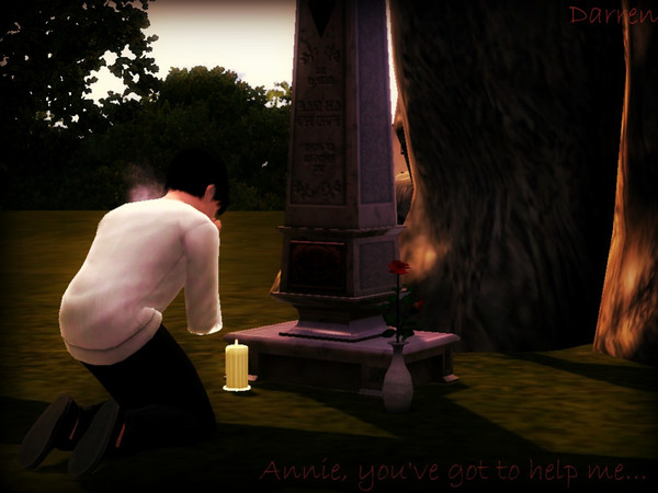 This is one of the shots I really used some time on. His name is Darren, and he lost his little sister Annie. Annie was accidentally killed by a vampire(I used a vampire mod that made them able to drink all of the victims blood and kill them, and... yea, she was unlucky) Now he goes to her grave everyday just to talk to her. What do you think of this shot? Please share your opinion with me, and if you have any questions about special content used then just ask. - Layla