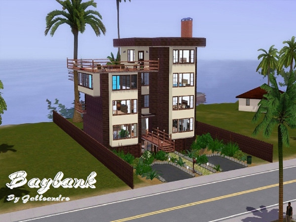 ...Baybank, my newest lot to TSR! Located by the banks of the bay of Starlight Shores (hence the name), this simply designed towering home is perfect for Sim roomies, or a Sim family, if so desired. Uses all expansion packs EXCEPT for Pets, and stuff packs EXCEPT for Diesel. There's also a partially-full basement. Enjoy!