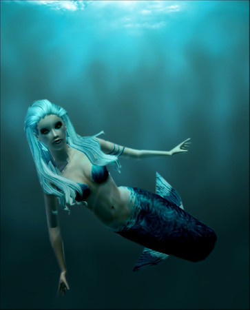 Beneath the waves of the ocean.