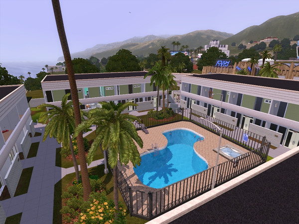 My Grandparents used to live in a place like this, a closed-in apartment complex with two-story units and home entrances in in the courtyard/pool area. Nice community feel